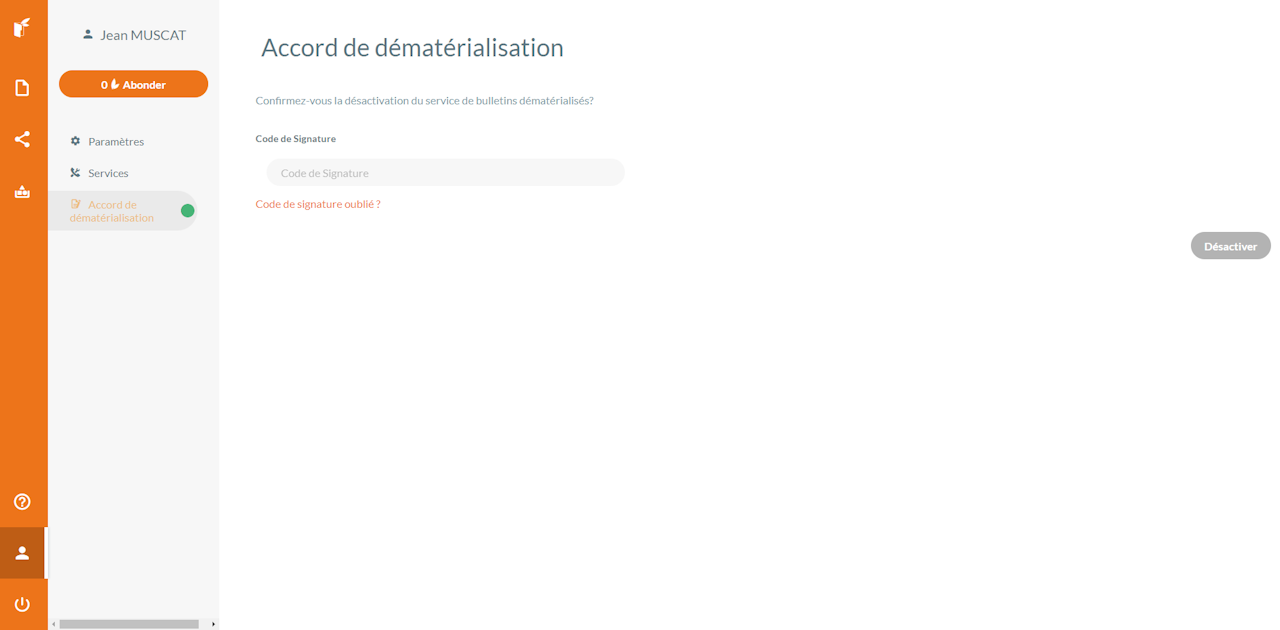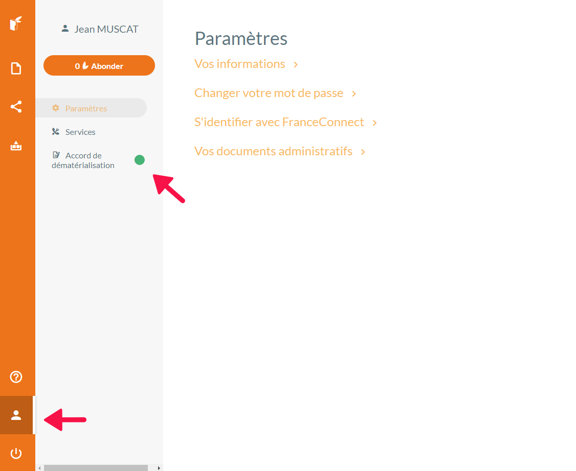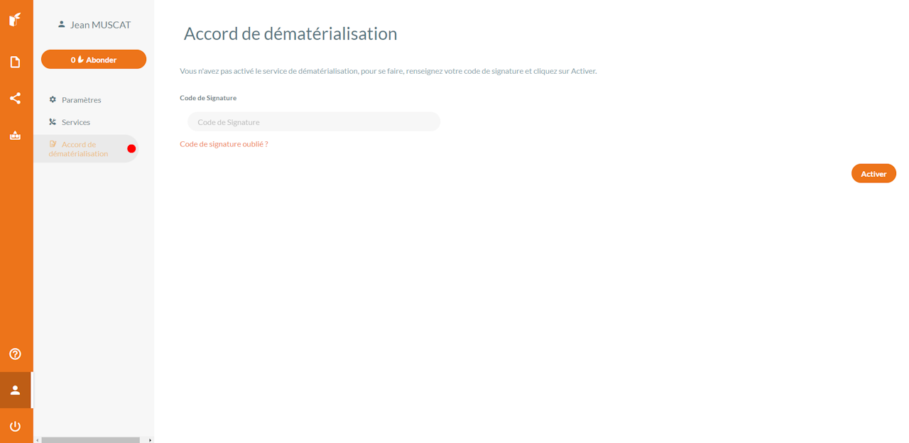 La pastille verte indique que l'accord de dématérialisation est bien activé pour votre compte.