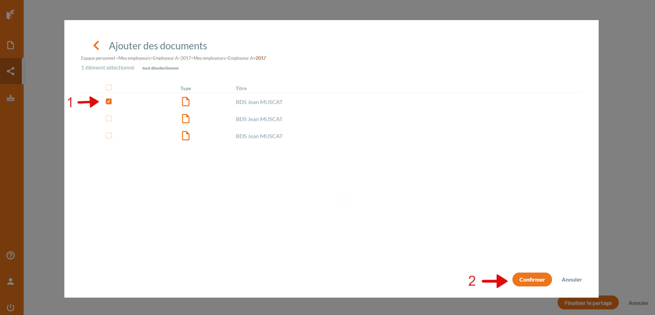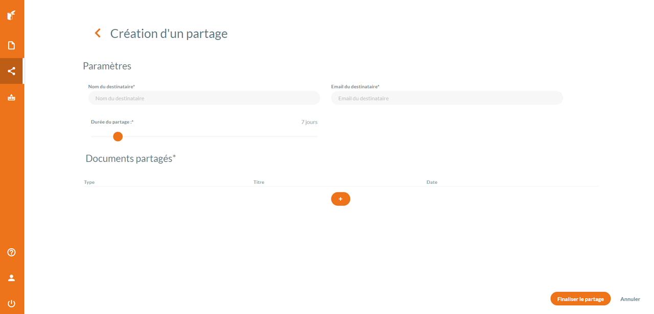 Ajoutez le document que vous souhaitez partager puis cliquez sur "Finaliser le partage"